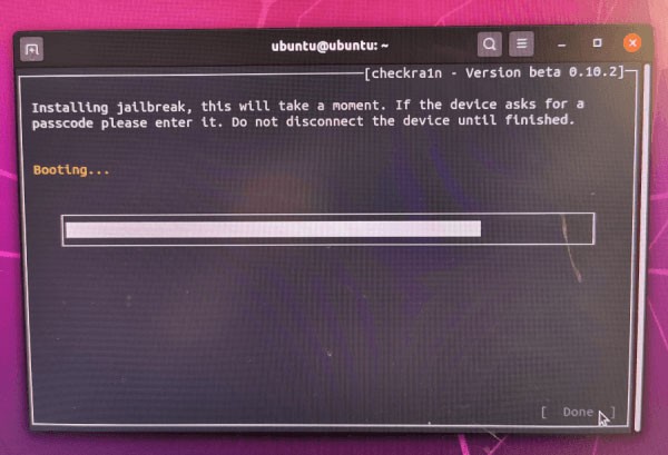 成功让iphone 进入dfu 模式之后,checkra1n 就会立即进行越狱啦,越狱完成后按下done 就完成啰。