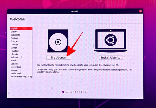 选择「try ubuntu」从usb 启用系统;
