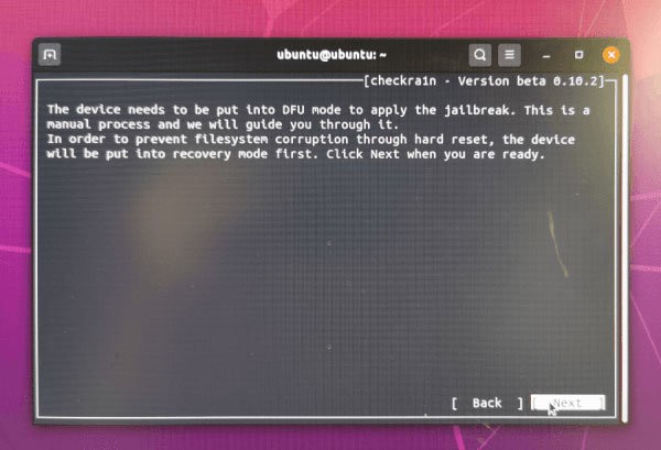 要开始越狱前,必须将手机进入dfu 模式,按下next 就会自动协助你进入该模式;