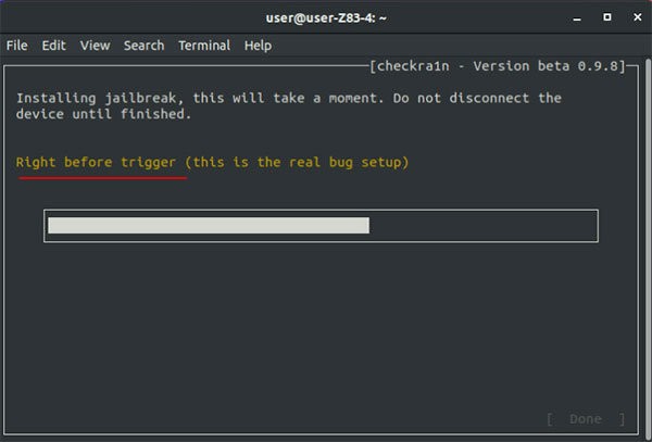 注意:如果越狱过程中,卡在right before trigger这个画面,有以下解决方法: