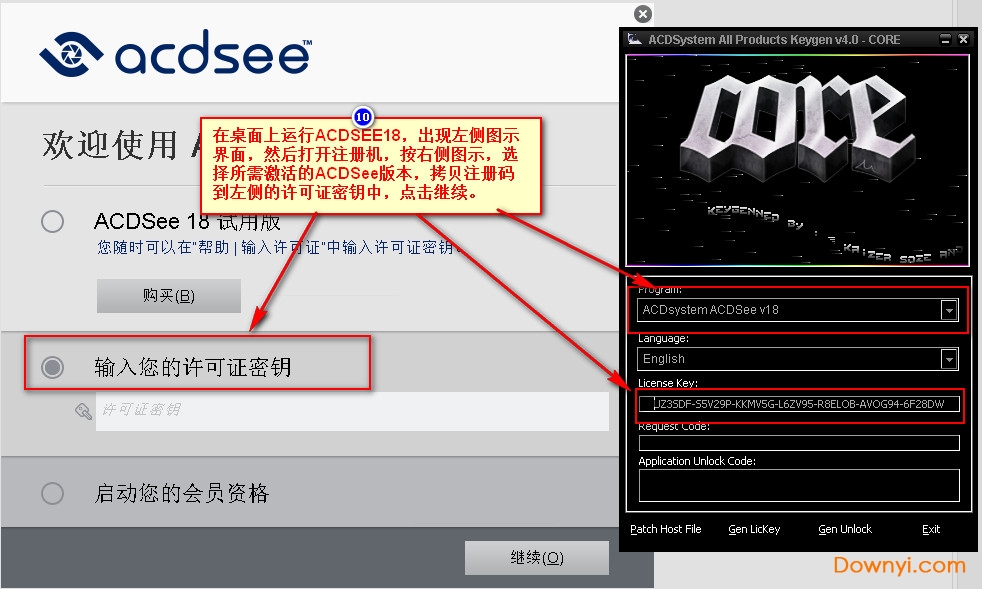 11.把上方右侧的license key里面的注册码许可证粘贴到左侧我勾选的框中,点击继续,即可修改