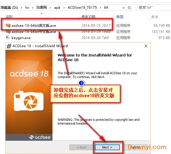 3.等待卸载完毕,打开刚才解压的文件夹,点击acdsee18英文版进行安装,如图: