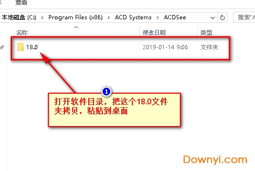 1.衔接上面的安装教程,安装完毕之后,打开软件安装目录,默认目录是c:program files (x86)acd systemsacdsee,点击拷贝18.0文件夹,放到桌面上,如图所示: