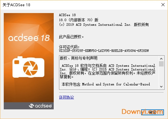 12.关闭,再打开acdsee18,点击关于acdsee18 即可发现,此产品已授权,代表正式修改,如图所示: