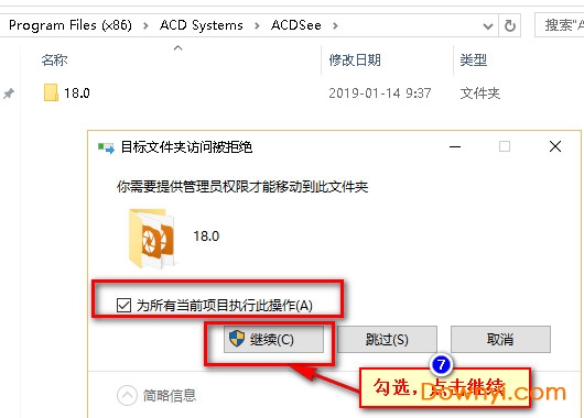 7.提示需要管理员才能够移动此文件,勾选所有,并且点击继续,如下图: