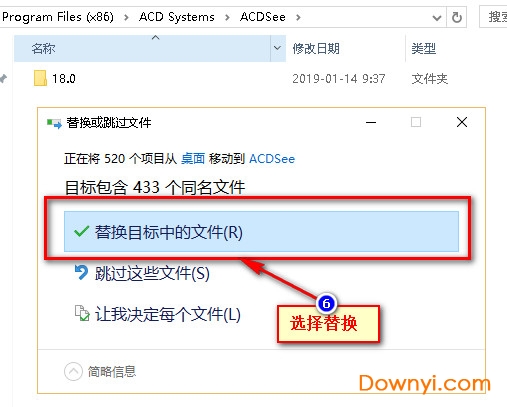 5.完成之后,打开acdsee18安装路径c:program files (x86)acd systemsacdsee,然后将刚才桌面上拷贝的18.0文件夹和现在的目录进行合并,如图: