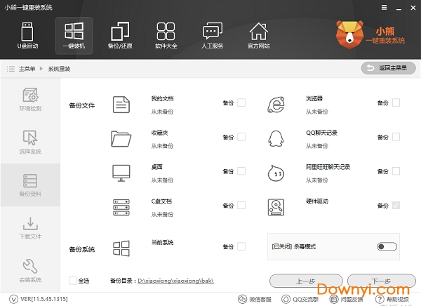 4.安装系统肯定要备份我们用户的资料,所以黑鲨很人性的话的帮你提供了这一步,不必再去手动备份资料。勾选你需要的备份的资料,点击下一步。