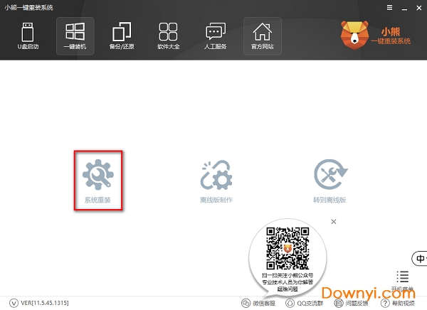 1.首先我们打开小熊一键重装系统,在一件装机模块,然后点击“系统重装”。进入如下图: