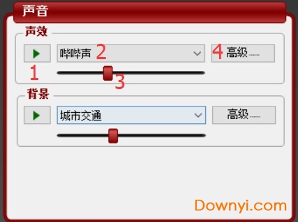 4 高级声效按钮: 点击该按钮,打开“声效管理器”。