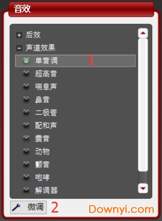 1. 音效列表: 显示软件加载的所有声效。你可以从该列表中选择一个声效。