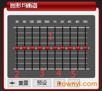 2. 重置图形均衡器: 将图形均衡器频段重置为中间位(0分贝)。