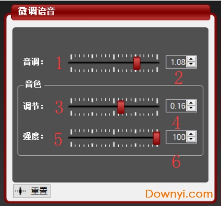 移调 0.0, 音色位移 0, 强度 0%—-正常语音