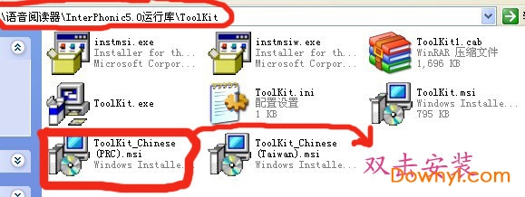 安装工具包:点击InterPhonic5.0运行库ToolKit文件夹中的 ToolKit_Chinese (PRC).msi安装。如下图所示