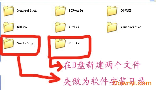 在D盘新建两个文件夹WenYuTong和Toolkit做为软件的安装目录。