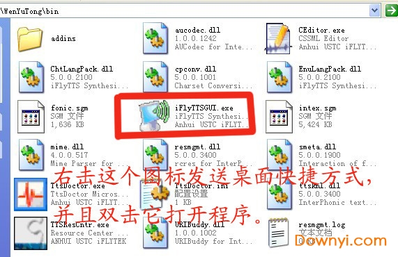 做完第五步,安装基本上是完成了的。先别急,软件还用不了的。右击bin文件夹中的iFlyTTSGUI.exe程序创建桌面快捷方式,并且双击它打开程序。