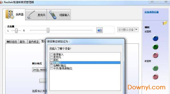 4、最好讲最重要的输入输出插孔设置,该项设置在设置面板的右边,按照处理芯片的不同,插孔数量也略有不同,但是设置都是一样的。
