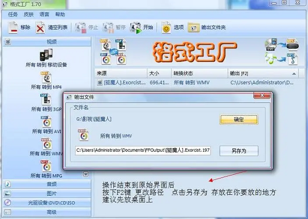 格式工厂可以指定iphone/ipod/psp等多媒体格式。