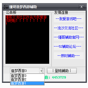 可以在下拉框中选择你需要进去的造梦西游游戏版本,支持造梦1,造梦2和造梦3,然后点击登录辅助即可。