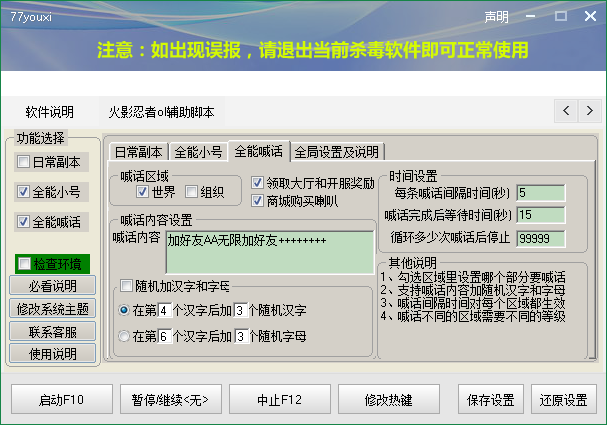 77youxi火影忍者ol辅助是为腾讯游戏《火影忍者ol》打造的挂机辅助工具。软件不仅提供挂机功能,还提供自动日常副本、小号练级、自动喊话等功能。如果你嫌升级太麻烦,那就用该辅助进行挂机升级吧!赶快下载体验吧!