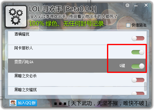 LOL寻欢手是专为游戏《英雄联盟》打造的自动连招辅助工具。软件功能强大,内置20多套技能连招,帮助玩家进行一键自动连招。还在觉得自己手残?那就赶快下载LOLLOL寻欢手,让你一套打出最大伤害,瞬间秒杀对手,上分必备神器!赶快下载体验吧!