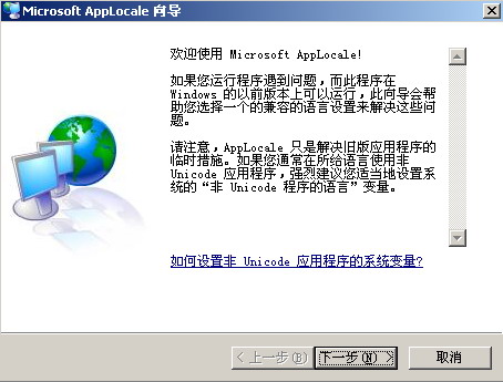 怎么办呢?其实很简单,只要用一个3M大小的软件,微软出的AppLocale就可以轻松解决(也支持其它相关程序比如游戏程序,另外也支持其它语种在中文简体下乱码的问题,软件网上很好找,大家可以自己找下载地址)。安装后运行该软件,点“下一步”