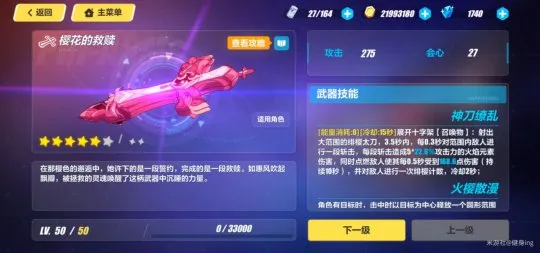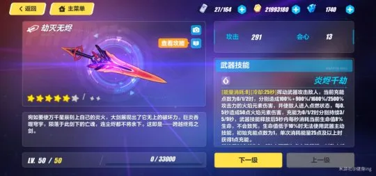 主C的武器,肯定要优先升满,升满后遇到火伤天就好打多了。