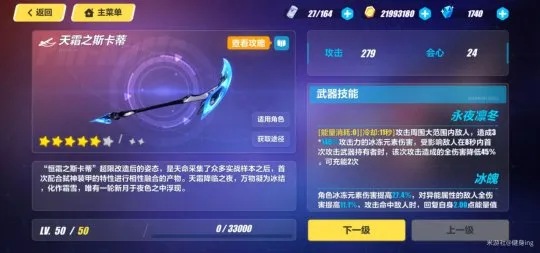 增幅粉毛的武器,主打月轮,优先级不高,遇到对应天气了再升也不迟,不过增幅粉毛要养的话建议早点养。