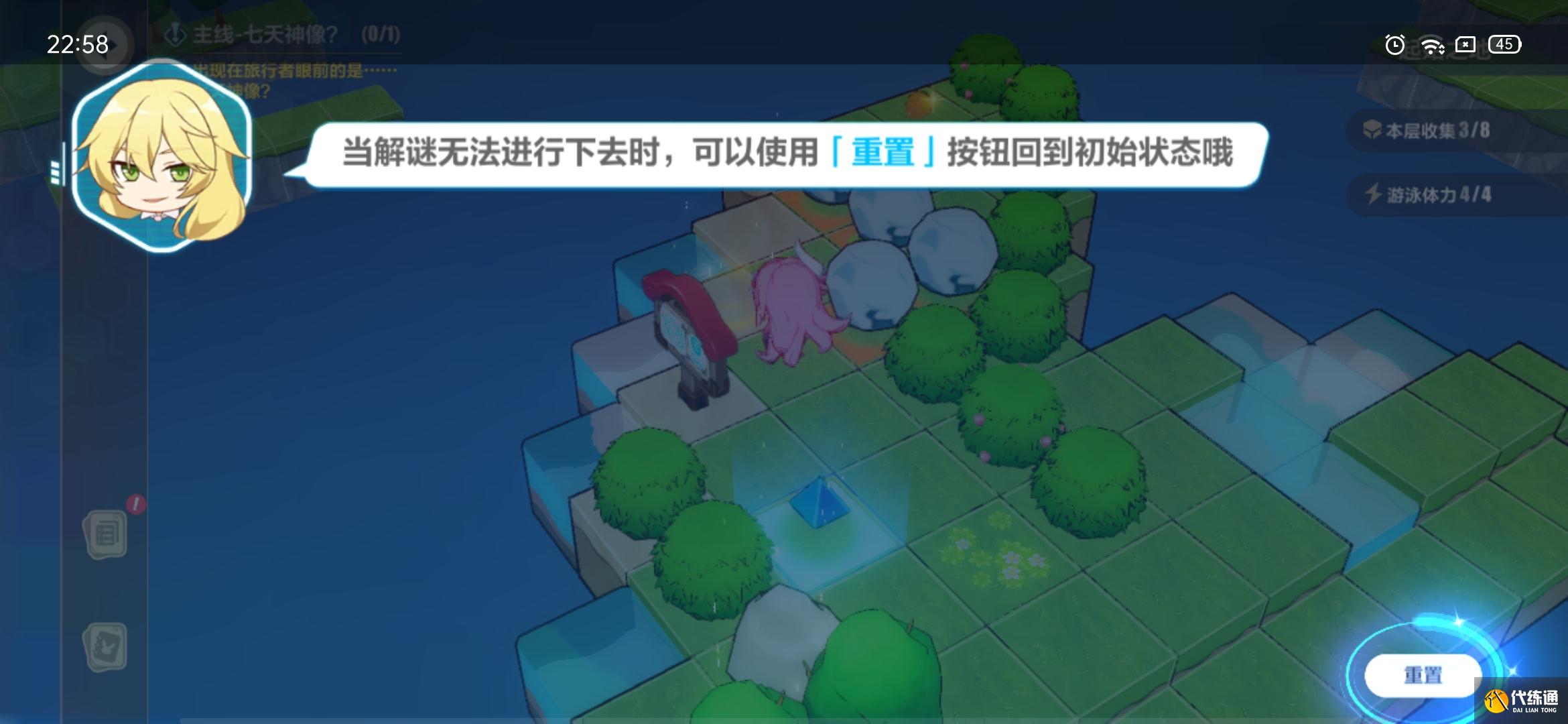 冒险者游泳有限定的体力,超过体力限度就会溺水回到原点。搜集风神瞳相关物品,如苹果、元素之力、树莓、冒险家的宝藏等物品,可以生成风神瞳,提高冒险者的体力。