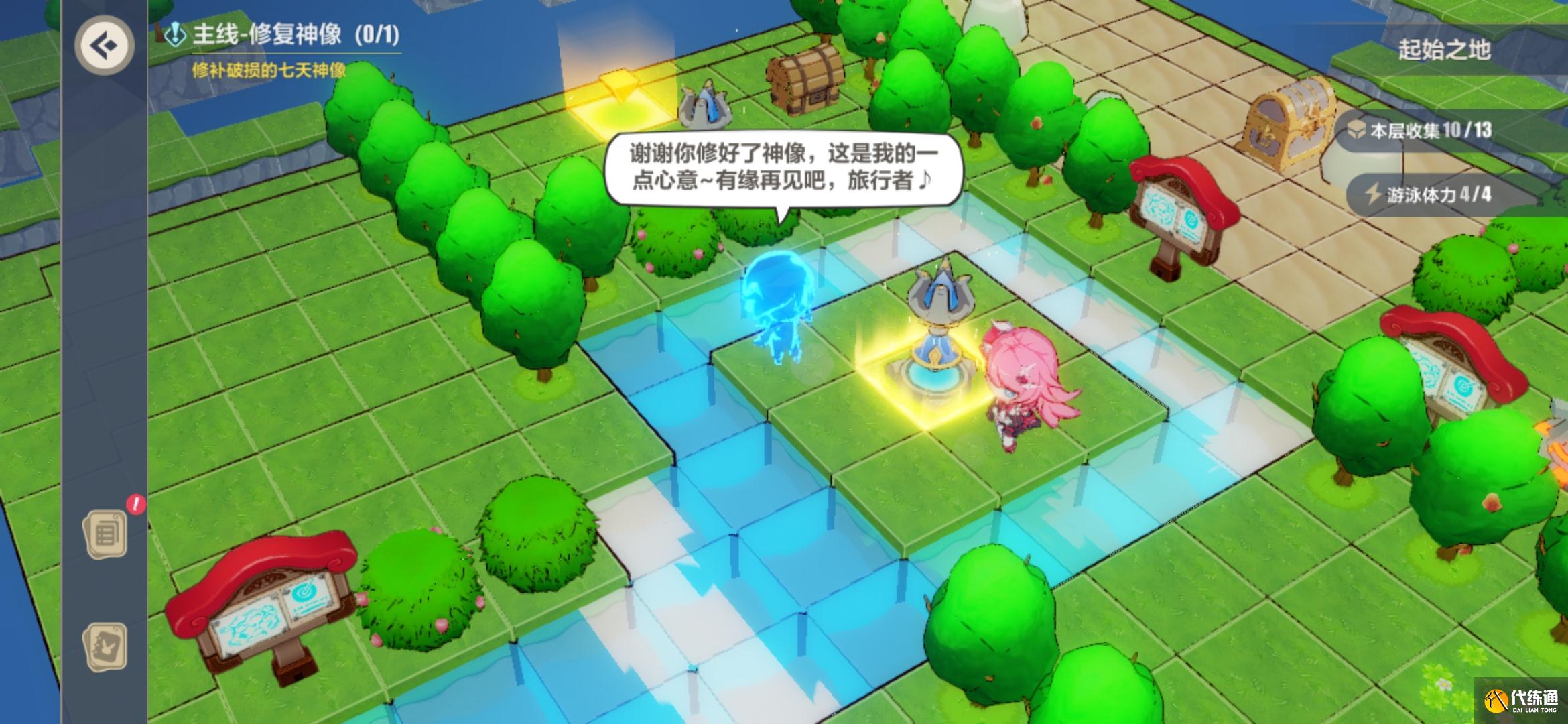 每个区域内存在大量的支线任务,如第二区域中修补神像以获得伙伴,就需要阿琳在地图的四周打败史莱姆等怪物,寻找到元素,修复神像,以召唤原神中的伙伴助阵。