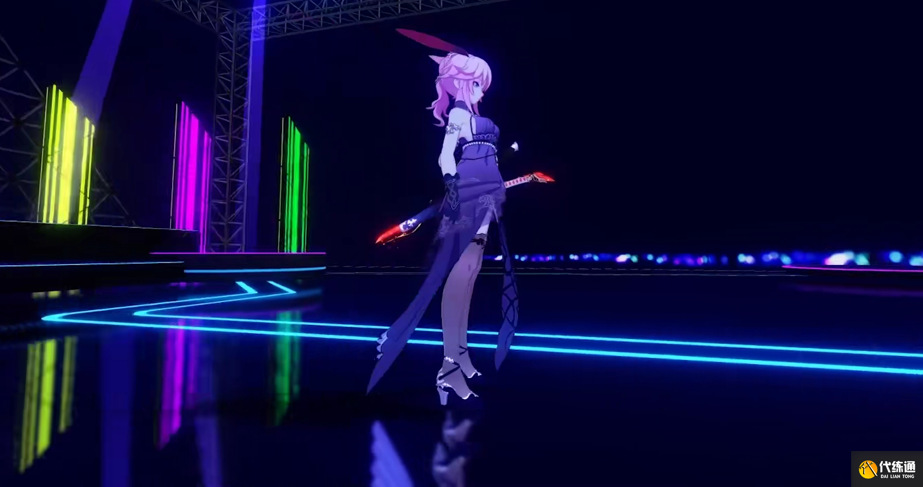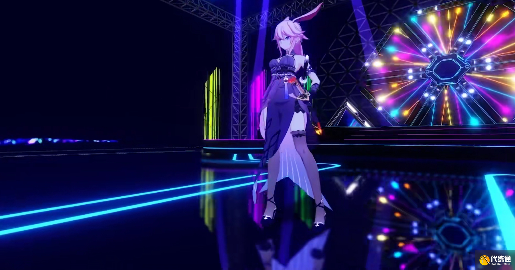 2.下半身则是蕾丝边过膝丝袜配上一双高跟鞋,下半身饰品少,但设计元素不算少。黑丝在开口处做了外翻设计,同时设计了蝴蝶结绑带缠绕在开口处,视觉效果还不错。绑带高跟鞋,鞋开口都用花边圈住了。鞋后跟和绑带连接处都用印花风格设计的,整体看来十分优秀。