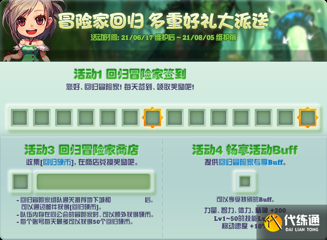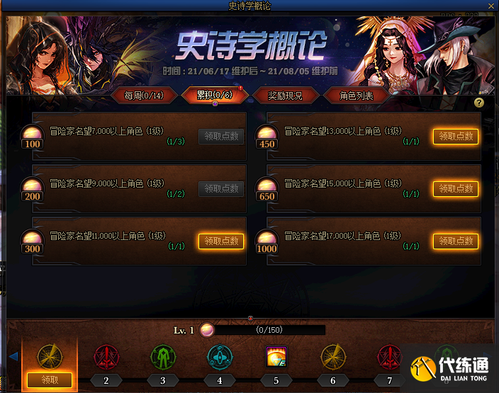 通过完成每周任务或是登录角色来获取点数,到达对应的点数等级,可以获得等级buff或奖励道具。