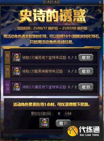 累积3周可获得1件自选史诗(武器除外),累积6周可以获得2个史诗跨界石