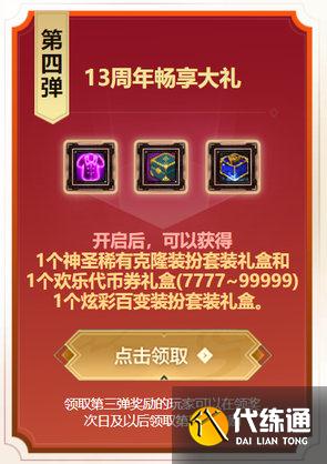 13周年庆畅享大礼的第一弹,希曼给大家准备的是100级史诗武器特选礼盒一个。