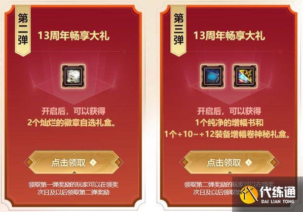 分别是灿烂的徽章自选礼盒2份、纯净的增幅书一本和+10~+12增幅券神秘礼盒一个(开启可获得)