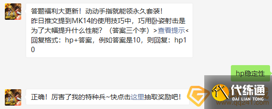 昨日推文提到MK14的使用技巧中,巧用卧姿射击是为了大幅提升什么性能?