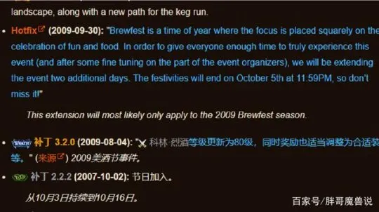 由于年代较为久远,总会出现一些记忆偏差,所以玩家们也担心TBC版本怀旧服有没有美酒节,如果有美酒节的话又会不会掉落相应的物品。为了验证消息的准确性,胖哥特地查阅了当年的补丁和蓝贴,发现魔兽世界第一次美酒节是在2.2版本,也就是2007年开放的,并且当时是掉落装备的,直到3.2版本美酒节才改版,掉落的装备属性也改成了80级。