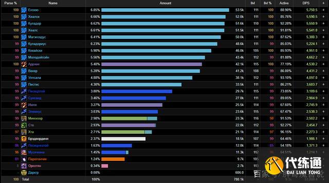 从DPS数据来看,这11名法师的平均秒伤达到了5000以上,而三名术士的秒伤差距比较大,公认单体第一的猎人则被甩在了后面,至于惩戒骑更是全程看戏。