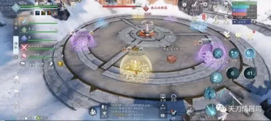 三蕊阵分为三式,BOSS在场地边缘召唤紫、黄、蓝三色花丛,且每个少侠脚下也会随机出现花色。随后BOSS对全场目标造成持续伤害,技能最后一击更是可以直接秒杀满血队员。