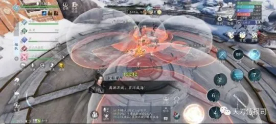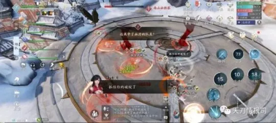 阿暖对圆形范围内的少侠造成继续伤害。该技能范围较大,但可以用格挡抵御伤害。