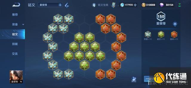 夏侯惇的铭文推荐夏侯惇的铭文推荐,蓝色铭文选择狩猎,绿色铭文选择虚空,红色铭文宿命,这三个铭文合在一起可以增加物防、最大生命、攻击速度、冷却缩减和移速,有了这些效果,夏侯惇度过前期完全没有问题,装备成型后这些铭文又能成为辅助夏侯惇的必备所在,使得夏侯惇会更牛批。