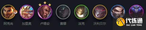 这套阵容关键点是狂徒,可以让阿克尚开局就吃到光明BUFF,而且1星不容易暴毙。