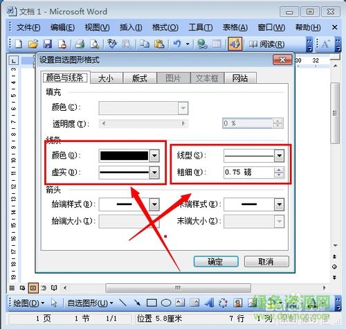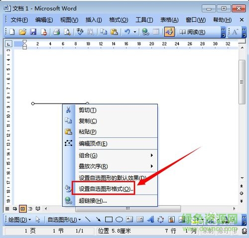 在WORD文档里,鼠标左键单击不放手拖动画直线,然后右键直线,点击“设置自选图形格式” 如图