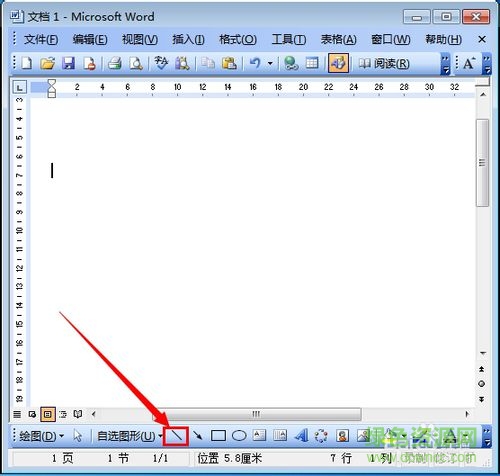 1、打开word文档,在界面底下的”绘图“工具栏里,点击”直线“;