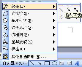 2007版直接点插入菜单里面的形状,里面的线条工具和图形一目了然。