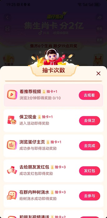 2、在活动界面,我们就可以参与到抽卡活动中,每天都会有抽卡机会,通过抽卡就可以集各种生肖卡;