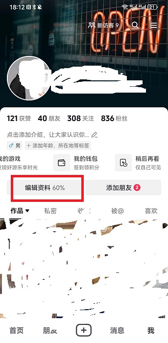 2、在个人主页中我们可以看到会有一个【编辑资料】的按钮,点击这个按钮就可以进入到编辑信息资料页面;