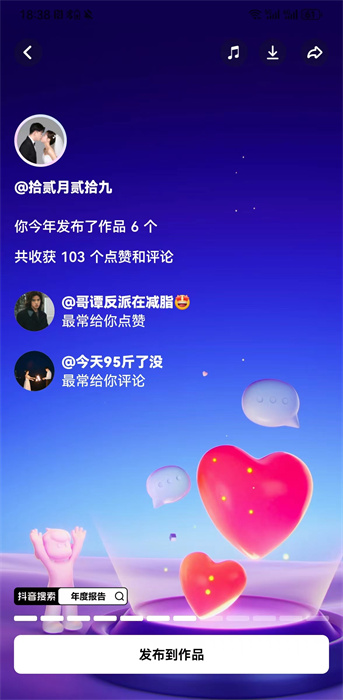 7、接着会有你的发布视频数量统计、给你点赞和评论的数量以及最多的人;