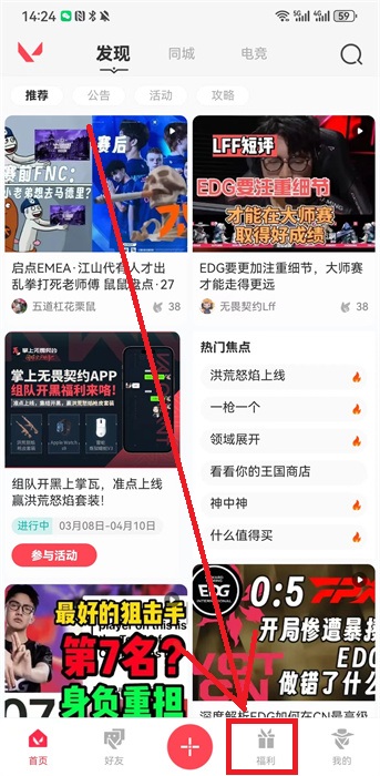 1、首先我们需要保证软件为最新的版本,然后在软件中登录自己的账号,登录完成在之后需要在首页点击右下角的【福利】进入到其界面;