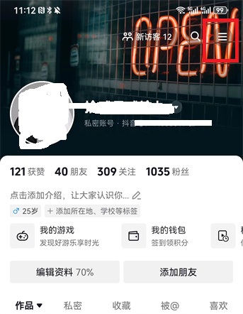 2、在主页界面中可以看到右上角会有一个【】按钮,我们需要进入其中;