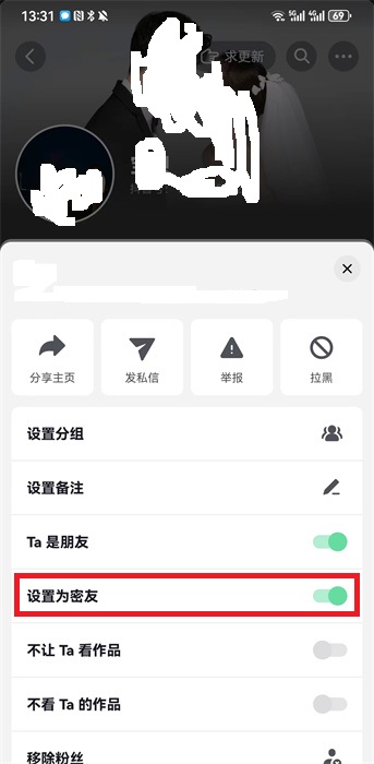 5、最后只需要在弹出的窗口中点击取消【设置他为密友】就可以完成操作,并且取消之后对方也是不会知道的,不会通知对方。